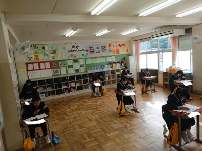 本日、3年生は実力テストを実施しました。1時間目は理科のテストです。問いに対して、どう答えたらよいのか考え解答しました。