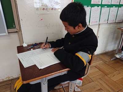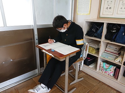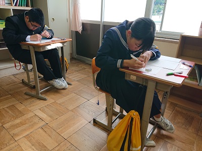 本日、3年生は実力テストを実施しました。2時間目は数学のテストです。一問一問を大事に解いていました。