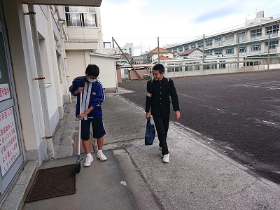 委員会活動の様子です。学習環境委員が常時活動として玄関掃除を丁寧に行っています。いつもありがとうございます。
