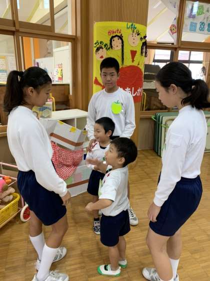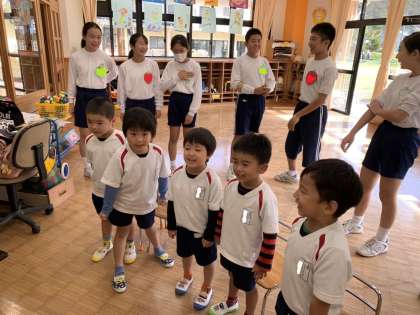 へだっこセンターの園児が、「お兄ちゃん!」「お姉ちゃん!」と大きな声で1年生に声をかけていました。1年生はとても嬉しそうでした。