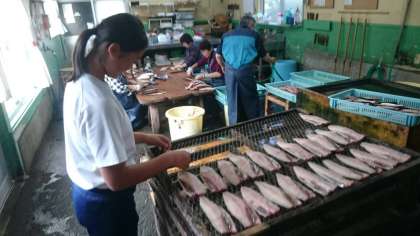 東部水産加工様での体験の様子です。