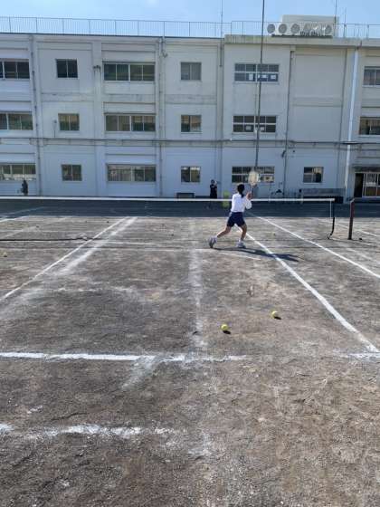 女子ソフトテニス部は本校で練習を行っています。たくさん打ち込みを行い、基礎力のアップを図っています。