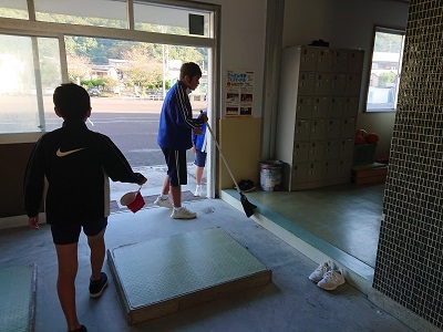 委員会活動の様子です。学習環境委員が常時活動として玄関掃除を丁寧に行っています。いつもありがとうございます。