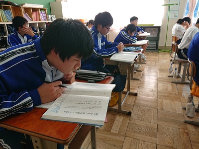 2年生は国語で、「源平争乱の歴史語り −平家物語− 」について学習しています。本文をじっくり読み取り、内容について理解を深めています。