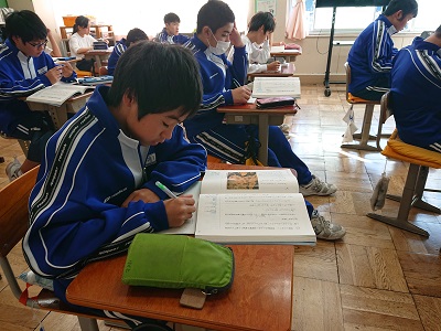 2年生は国語で、「源平争乱の歴史語り −平家物語− 」について学習しています。本文をじっくり読み取り、内容について理解を深めています。
