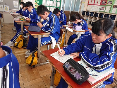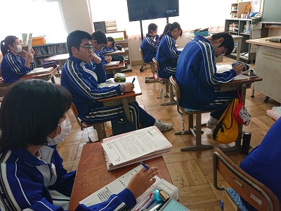 3年生は道徳で「最後の酸素ボンベ」という資料を使って、「生命の尊さ」について迫りました。酸素ボンベを切るという判断に賛成か反対か、自分の立場を述べました。
