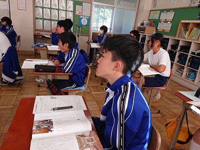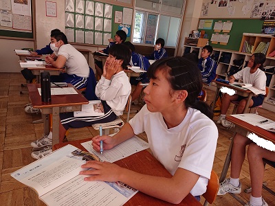 2年生は道徳で、「誇りを胸に −47年に感 謝をこめて− 」よいう資料を使って、「よりよい学校生活、集団生活の充実」について話し合いました。
