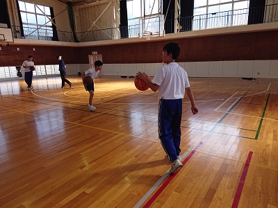 昼休みの様子です。グラウンドや体育館で、友達と一緒に体を動かしています。