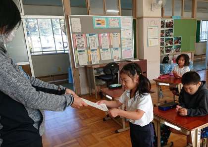 小1の教室では鈴木先生が沼津文園に掲載された子を表彰していました。表彰は小学校朝礼でも校長先生から表彰していただきました。おめでとうございます。