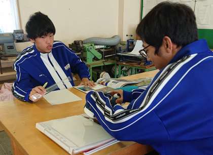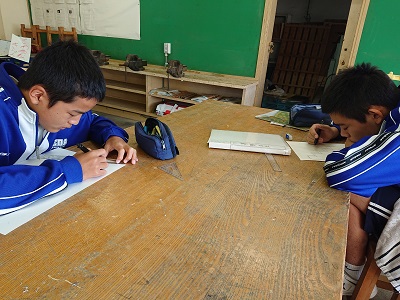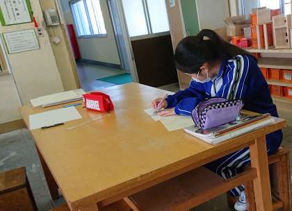 3年生は美術で「空想の世界への誘(いざな)い」という題材を学習しています。線遠近法、等角投影図法、一点透視図法、二点透視図法などの図法を用いて表しています。