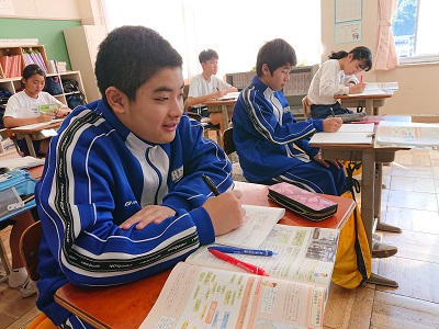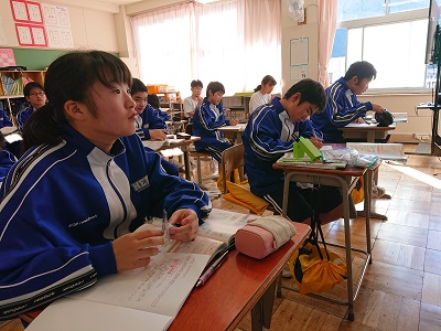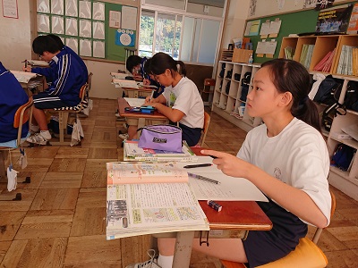 2年生は社会で「都市と農村の変化と人々のくらし」について学習しています。中国・四国地方の都市や農村の役割、課題について、資料を読み取りながらまとめていました。