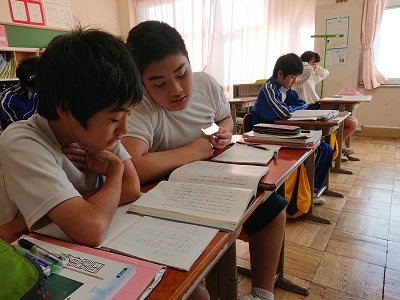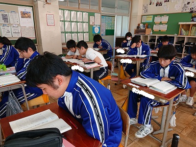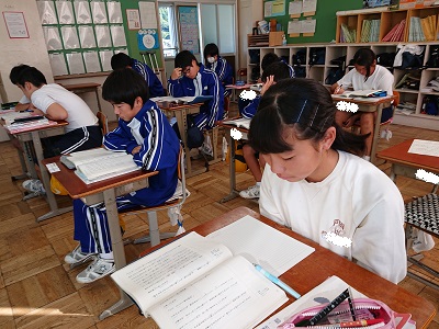 2年生は国語で、「源平争乱の歴史語り −平家物語− 」について学習しています。本文をじっくり読み取り、内容について理解を深めています。