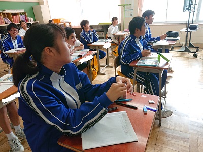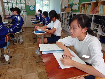 2年生は数学で「合同な三角形を書こう」という学習課題で活動を進めました。三角形の合同条件を考えながら、演習問題にチャレンジしています。