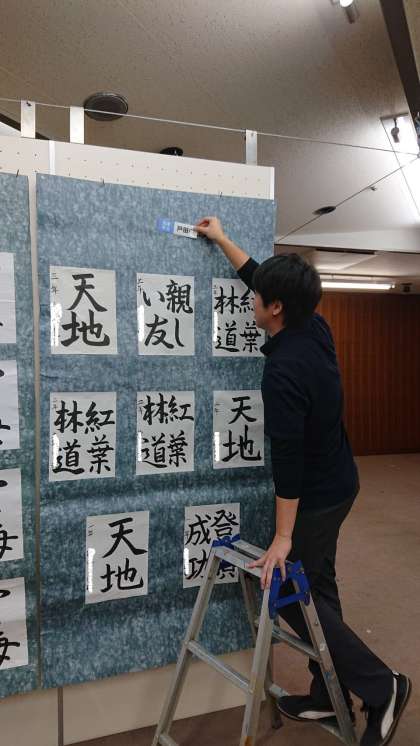 11月8日から10日の日程で、静岡県中学校文化連盟総合文化祭沼津大会(沼津市民文化センター)が開催されます。これには本校代表生徒8名の習字作品も展示部門で出品されます。本日、市民文化センターにおいて本校作品の搬入作業を石井先生が行いました。