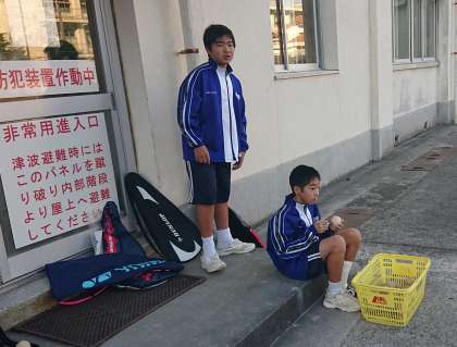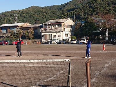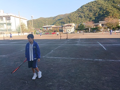 ソフトテニス部の様子です。朝早くから準備をして、みんな精力的に動いています。