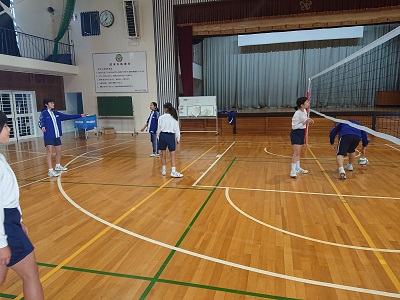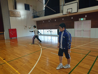 バレーボール部の様子です。基本の練習に取り組み、個々のレベルアップを図っています。
