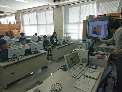 小6の言語科「英語の時間」は、渡部先生とALTのアーロンさんが担当しています。子どもたちは映像を見ながら、自分の言いたいことを考えました。
