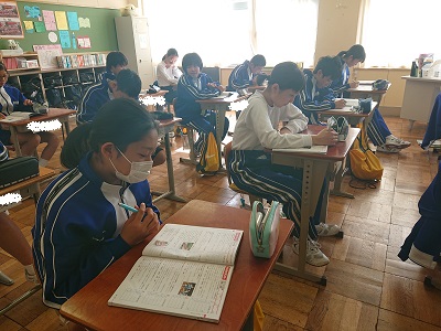 1年生は家庭科で「健康で安全な住まい」について学習しています。今日は「家族の健康と室内環境」について、資料を通して考察しました。