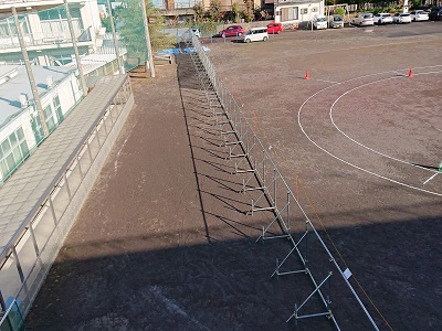 戸田小校舎改築工事が先週から始まっております。戸田小中一貫学校開校に向けて、準備を進めます。業者の方が、小学校と給食センターの仮囲いを行いました。