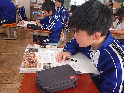 2年生は社会で「産業革命と19世紀のヨーロッパ」について学習を進めました。産業革命は欧米諸国にどのような影響を与えたのか教科書や資料から読み取りました。