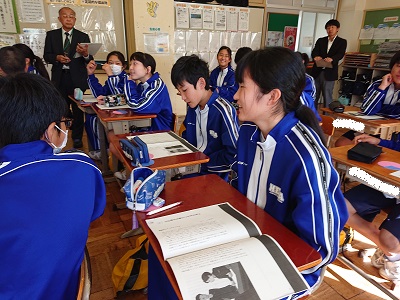 1年生は道徳の時間に、沼津市教職員研修センター唐國アドバイザーを招聘して校内研修を行いました。「銀色のシャープペンシル」という資料を使い、「よりよく生きる喜び」について話し合いました。