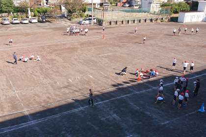 小学生は、グラウンドで持久走大会に向けて走り込みを行っていました。
