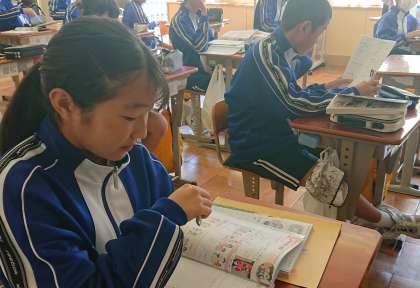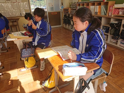 1年生は家庭科で「幼児の遊びと発達」について学習を進めていました。ワークノートを使用して、まとめをしていました。