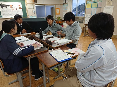 研修テーマ「自ら表現し、互いに高め合う子 〜9年間の連続した学びを目指して〜」について、今日の授業はそれに迫ることができたのか、意見を交わしました。