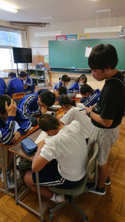 助け合い学習では、小学校の杉山先生も一緒に支援してくれています。