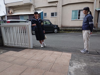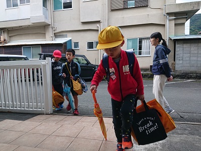 登校の様子です。小中児童生徒は元気に登校してきました。