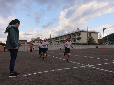 小学生は、グラウンドで持久走大会に向けて走り込みを行っていました。