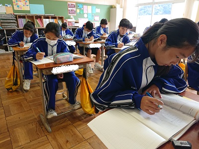 1年生は数学で「比例・反比例の利用」について、演習問題を解きながら理解を深めました。