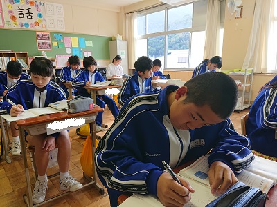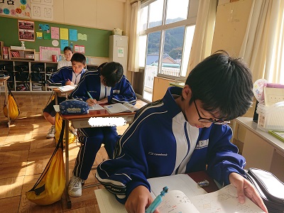 1年生は数学で「比例・反比例の利用」について、演習問題を解きながら理解を深めました。