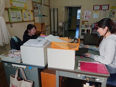 保健室の様子です。二人の養護教諭さんが小中児童生徒のために話し合っています。