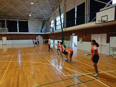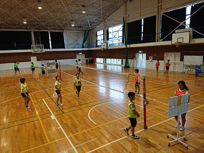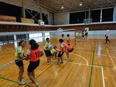 小学6年生の児童が体育館でソフトバレーボールを行っていました。