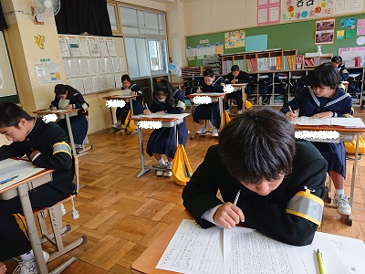 1年生は国語のテストを行っていました。