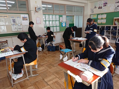 2年生の朝の様子です。朝の支度をした後、すぐに期末テスト対策の勉強を行っていました。