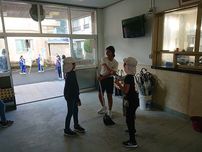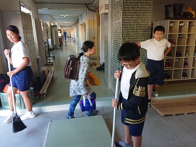 委員会活動の様子です。小中の学習環境委員さんが玄関掃除を丁寧に行っています。いつもありがとうございます。