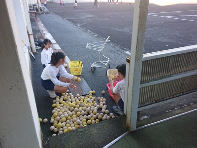 女子ソフトテニス部員はボール一つ一つを大切にしながら活動を進めています。