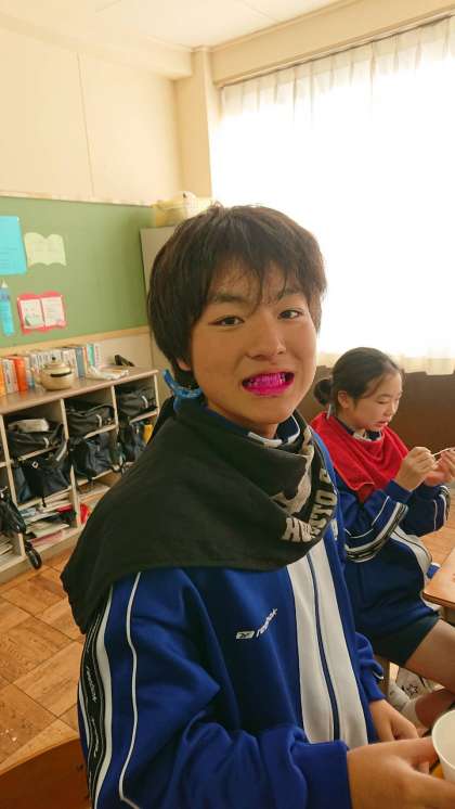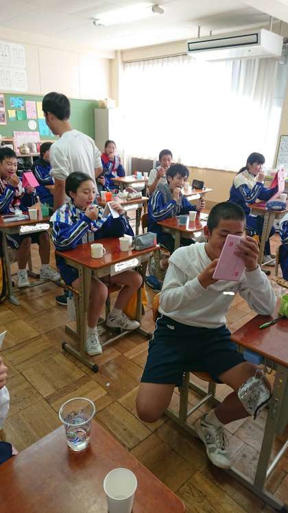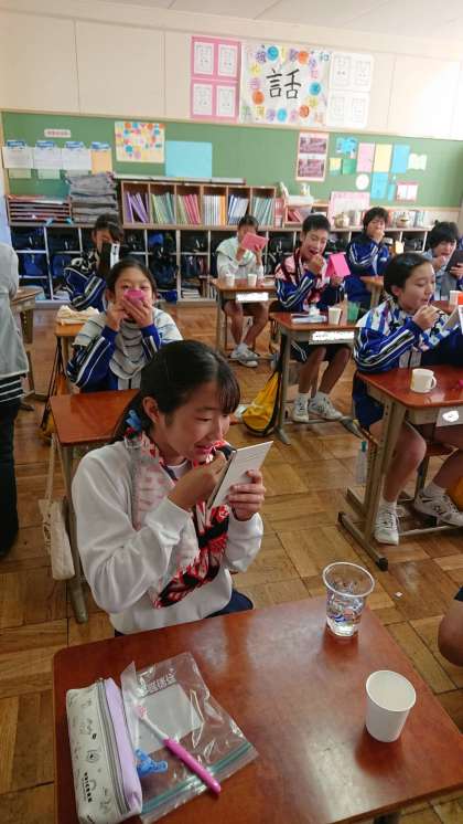 講話の後、歯の磨き方について確認しました。みんなカラーテスターを使って、上手に歯磨きできたかを確認しました。