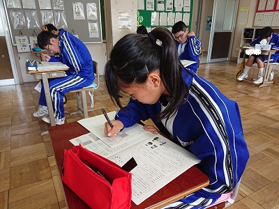 3年生は理科で、学調対策問題に取り組んでいました。