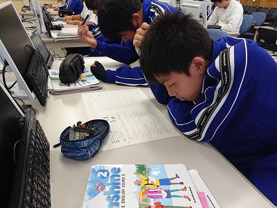 2年生は英語で、過去の実力テスト問題に取り組んでいました。