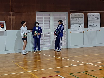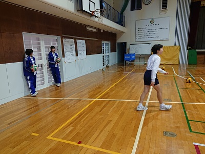 バレーボール部の様子です。サーブ練習をしながら、個々の力量を高めています。