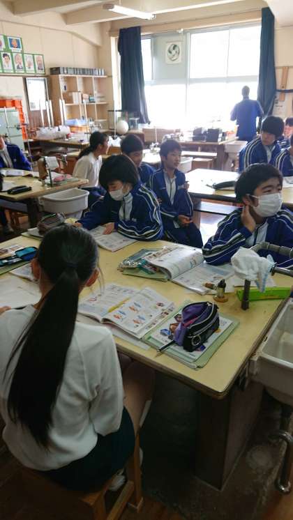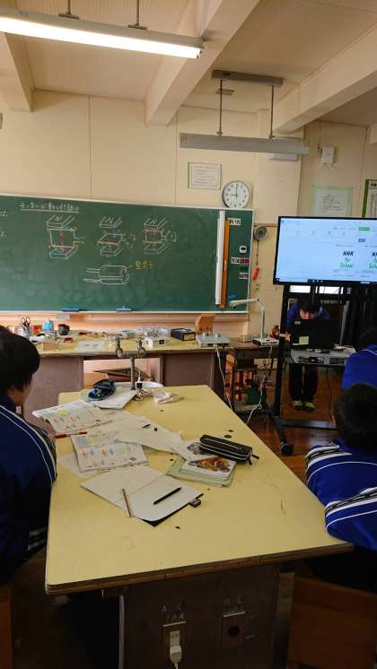 2年生は理科で「電流と磁界」という単元を学習しています。今日は電流が磁界から受ける力について話し合いました。そして、フレミング左手の法則を学びました。
