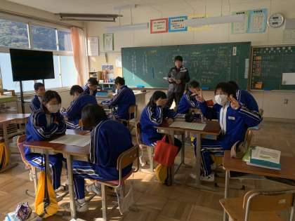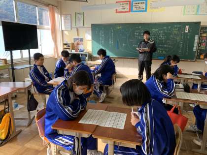 3年生は国語で、アルトゥーロ=ヴィヴァンテ作の「灯台」について学習を進めています。学習課題「今の僕と去年の僕の相違点は何か」について学習をしました。終了後、少しの時間を使って、ペアで指取り百人一首を楽しみました。