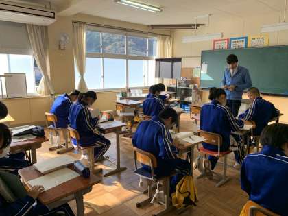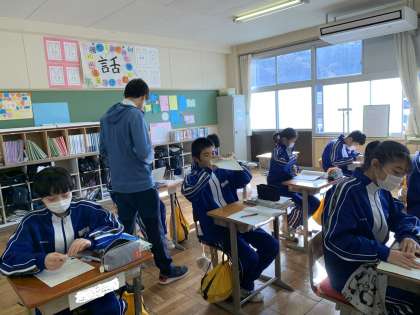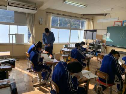 1年生は数学で作図の二等分線という学習をしています。角の二等分線の書き方を確認しました。