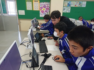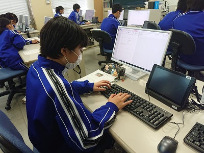 1年生は技術で、「情報通信ネットワークと情報モラル」について学習しています。勝呂先生もゲストティーチャーとして、生徒の学習支援にあたっていました。