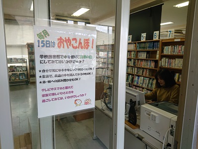 学校図書館の様子です。図書館支援員さんが利用しやすいよう心を込めて整備しています。