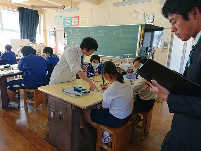2年生は理科で「電流と磁界」という単元を学習しています。今日はコイルと磁石だけで本当に電流が流れるのか、予想を立て検証実験を行いました。