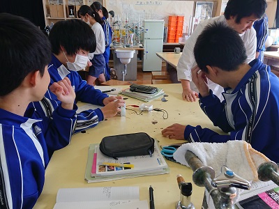 2年生は理科で「電流と磁界」という単元を学習しています。今日はコイルと磁石だけで本当に電流が流れるのか、予想を立て検証実験を行いました。